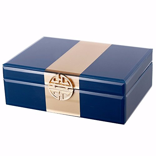 Benzara Dapper Opulent Glass Jewelry Box, Blue