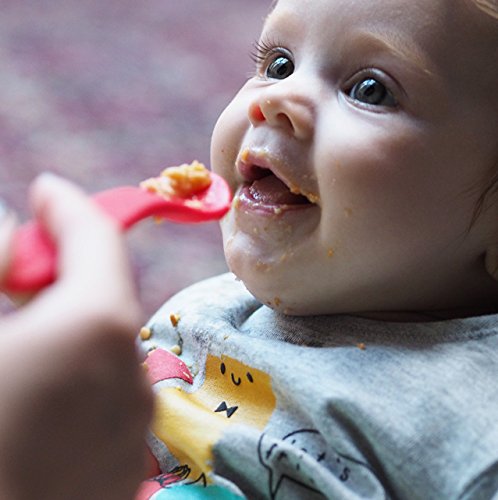 ReleaseDate : 2017-08-22 Studio : oogaa Home, LLC Publisher : oogaa Home, LLC Binding : Baby Product Product Description The perfect weaning spoons, designed with a long handle to fit adult hands. Made from European approved food safe, high-grade silicone (higher than FDA standards). Will not leach chemicals, non-toxic, PVC and phthalate FREE. Bumpity Bump, open wide. oogaa's spoons feature a soft textured underside which glides over babies' tongue and lips stimulating babies senses. Soft silicone is BPA free, BPS free, no harsh chemicals. Dishwasher safe, boil safe and electric sterilizer safe. Makes feeding fun. DO NOT MICROWAVE. 0
