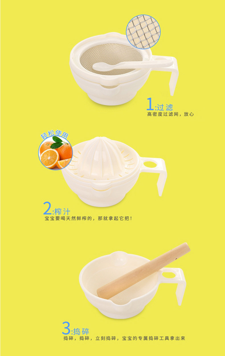 婴儿辅食研磨器宝宝食物料理机手动过滤机碗勺工具套装餐具