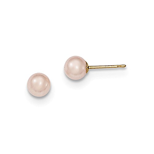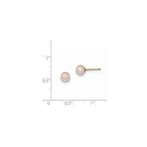 Solid 14k Yellow Gold 5-6mm Purple Round FW Cultured Pearl Stud Earrings