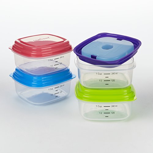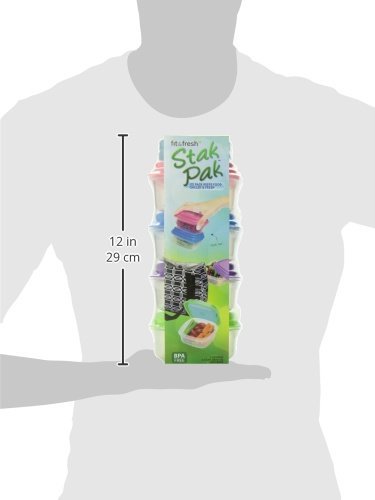Fit & Fresh Stak Pak Portion Control 1-Cup Container Set, 4 BPA-Free Reusable Food Storage Containers and Ice Packs, Healthy Lunch and Snack for School/Work