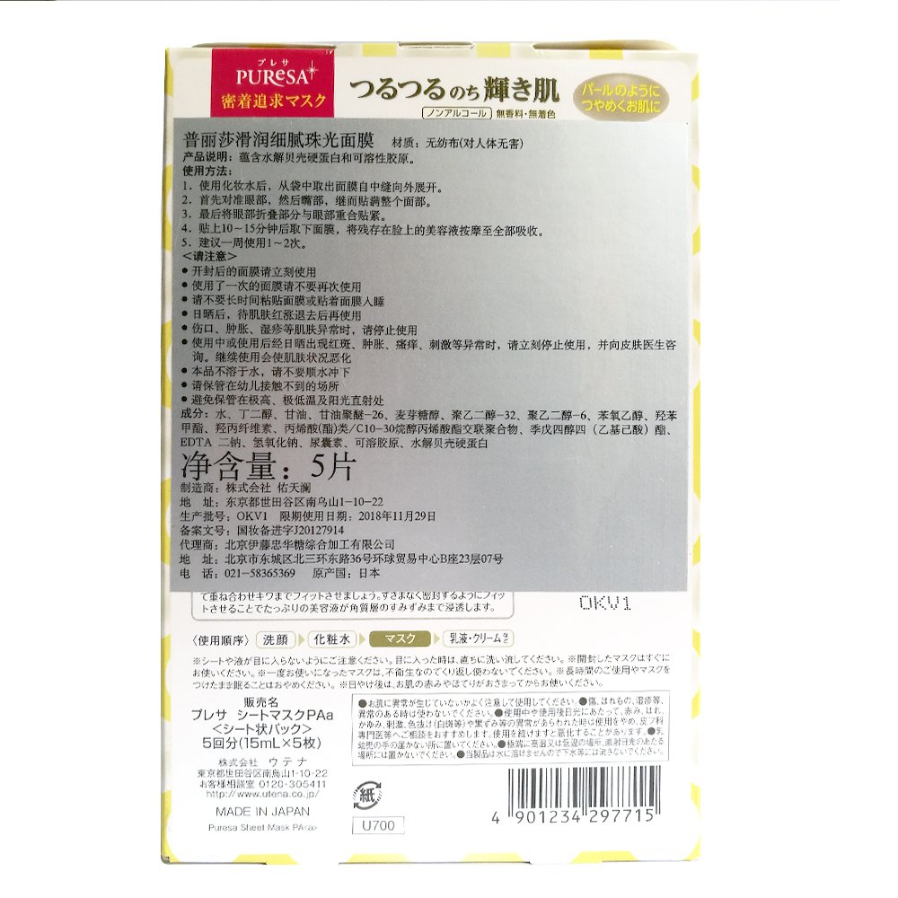 PReSA Sheet Mask Pearl Extract 15mL×5 sheets