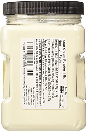 Our Sour Cream Powder is made from Sour Cream Powder (Cream, Cultures, & Lactic Acid), Cultured Nonfat Milk Solids, & Citric Acid. Once the package is opened, reseal container to lengthen its shelf life. Mixed with water, Sour Cream Powder can be used in practically anything you can think of as a replacement for the refrigerated version. Create dips, sauces, potatoes, cakes, muffins, spreads, and casseroles - you name it- with sour cream powder!Feature