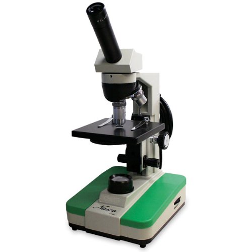 Studio : Nasco Publisher : Nasco Binding : Misc. Product Description Add more color to science. Nasco Colorscopes are high quality microscopes available in grey, green, yellow, purple, red, blue and orange. Specifications: Calibrated pointed eyepiece; 3-position, reverse nosepiece with 4X, 10X, and 40XR DIN color-coded objectives; 4-1/2" x 4-3/4" plain stage with locked-on storage clips is drilled and tapped to accept an optional mechanical stage (not included). Fixed condenser can be equipped with either disc or iris diaphragm, separate coarse and fine focus with rack-and-pinion mechanisms. Positive stops at both ends of the stage travel to prevent damage to delicate specimens or optics. Built-in illumination system with on/off switch; LED or RC light intensity control; Rechargeable batteries included. 0