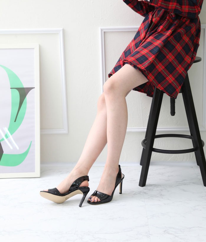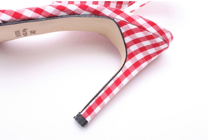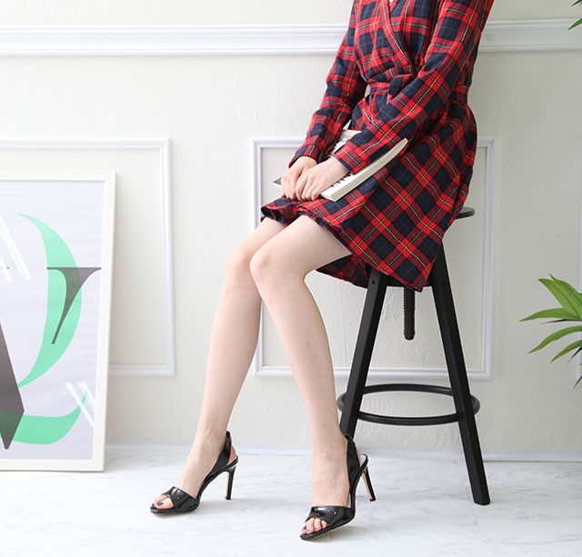 商品名:サンダル レディース ピンヒール スリングバック チェック ハイヒール 2018 春 ファッション 靴 婦人靴