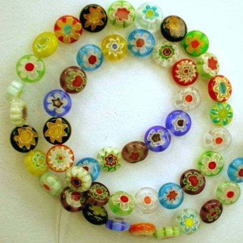Millefiori Glass Beads Coins 10mm Rainbow Mix 35pc Single Flowers
