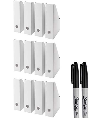 Ikea Fluns Magazine File Holder Bundle, White: Made for Magazines - Newspapers - Subscriptions - Paper - Files - Bills - And More [Set of 12 with Sharpie Markers]
