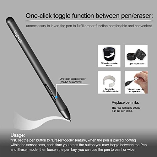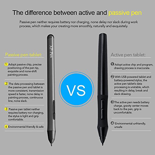 Advanced Battery-free Stylus, does not require charging and highlights your honorable environmental awareness; 2048-level pen pressure sensitivity is suitable for use with both right and left hand, and allows you to create variations in line width of opacity; 10 * 6 Inch working area, all these make you feel as if you are drawing with a real pen.