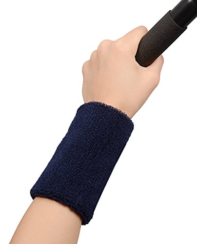 -. Feature : 3 paris wristbands in a package / Thick, durable, comfortable and washable / Absorb sweat effectively / Great for basketball, bike riding, baseball, yoga, soccer and other sport activities / Size:3.9"(L) x 3''(W) ; materials: polyester fiber 55% cotton20% lycra25%