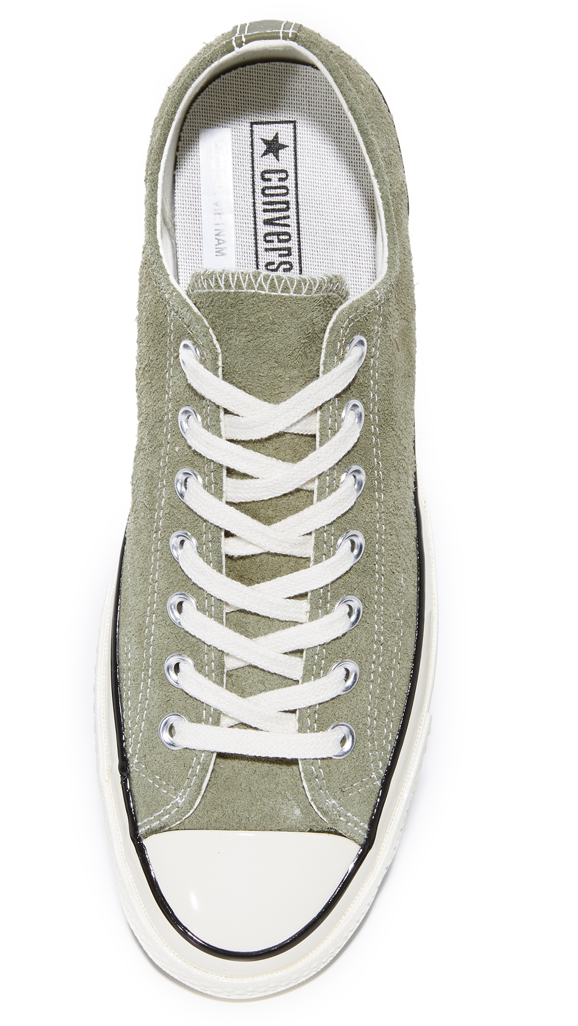 Replicas of the 1970s Converse Chuck Taylor All Star sneakers. Nickel eyelets and high-shine foxing add a refined look. Suede upper and rubber toe cap. Rubber sole.