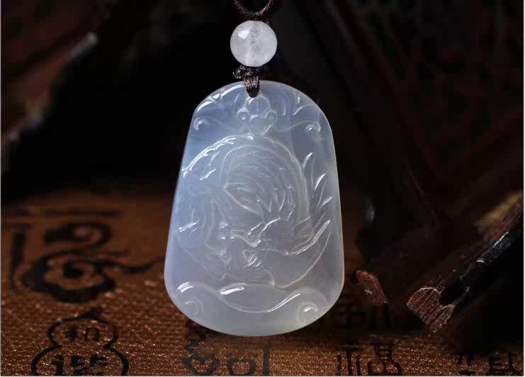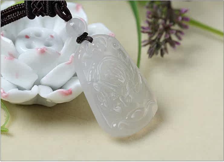 开光白色玉髓凤仙芝吊坠护身符属龙人开物