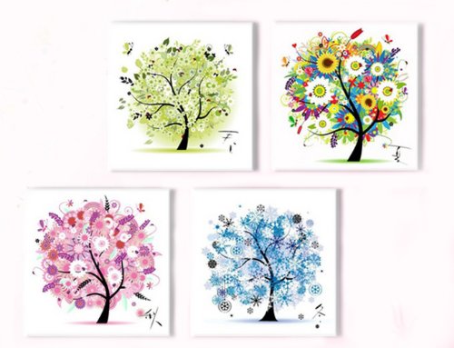 -. Title : クロスステッチ刺繍キット 財樹四季-春夏秋冬 4画セット 図柄印刷
