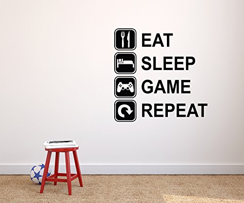 -. Binding : Baby Product -. Brand : Decalzone Inc -. EAN : 0791511464749 -. Feature : GAMING WALL DECAL - Size as picture: 22W x 22"H - In order to request a different color please send us a message after placing the order to let us know the color you would like for your Wall Decal. / EASY TO APPLY - It is really easy to apply to the wall and it includes a paper with Step-by-Step instructions to make it easier to apply. / HIGH QUALITY - Premium matte finish vinyl specially designed for interior design. The material is the best quality in the market and it is not cheap material at all. / SAFE FOR KIDS - All our decals are completely Non-Toxic and do not contain chemicals that can affect your health. / MADE IN USA - Created and designed by DecalzoneTM. -. IsAdultProduct : 0 -. Label : Decalzone Inc -. Manufacturer : Decalzone Inc -. PackageQuantity : 1 -. ProductGroup : Baby Product -. ProductTypeName : BABY_PRODUCT -. Publisher : Decalzone Inc -. Studio : Decalzone Inc -. Title : Eat Sleep Game Repeat Wall Decal - Gaming Wall Decals - Art Mural Player Decor Gamer Vinyl Sticker -. UPC : 791511464749
