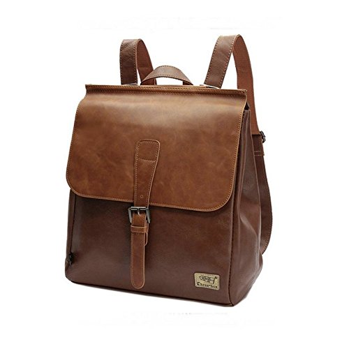 YST MATMO PU Leather Laptop Backpack College Casual Classical Travel Bag for Men