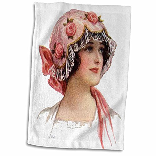 3D Rose Victorian Lady with Rose Lace Bonnet Towel, 15 x 22"