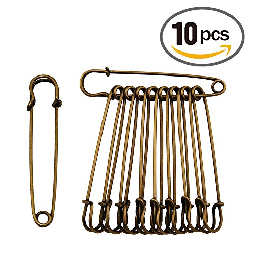 - Set of 10 huge functional safety pins with hundreds of ornamental, clothing and craft uses
