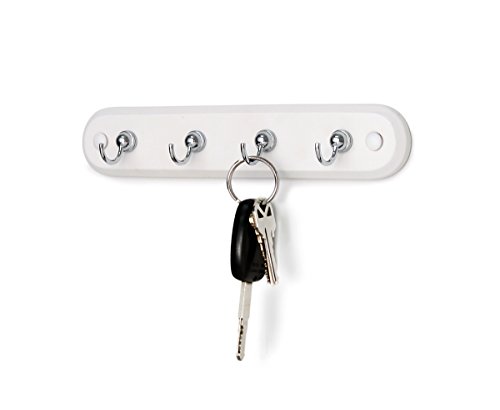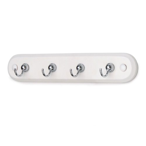 Spectrum Diversified Four Hook Key Rack, White Wood/Chrome Hooks