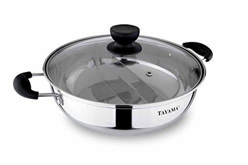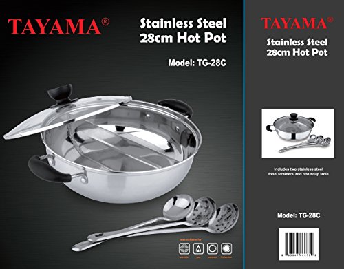 Tayama TG-28C Hot Pot with Glass Lid - 28cm/ 11 inch Hot Pot with Glass Lid. Entertain guest with family style cooking or enjoy an intimate dining experience with the family, New model includes 3 Ladles Accessory Spoons.