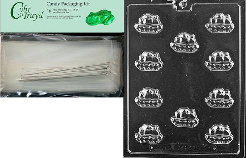 Cybrtrayd Mdk25S-K159 B/S Army Tank Kids Chocolate Candy Mold with Packaging Bundle, Includes 25 Cello Bags, 25 Silver Twist Ties and Chocolate Molding Instructions