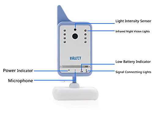 -. Binding : Baby Product -. Brand : BILLFET -. Color : White -. EAN : 0701470266834 -. Feature : Hassle-Free Portable Monitoring; Two way talk(with talk back system) / Temperature monitoring; Built-in 8 lullabies in the camera / 100% Digital baby monitor kit; Two way talk(with talk back system) / High contrast 3.2" color LCD monitor; VOX Function,Night vision camera / Support 10 languages:English/French/Spanish/Italian/German,and so on,Don't put the two terminals too close when using,or their digital signals would affect each other. -. IsAdultProduct : 0 -. Label : JLT -. Manufacturer : JLT -. PackageQuantity : 1 -. ProductGroup : Baby Product -. ProductTypeName : BABY_PRODUCT -. Publisher : JLT -. Studio : JLT -. Title : BILLFET Baby Monitor Video Audio baby safe Temperature Tips Two-way Baby lullaby -. UPC : 701470266834