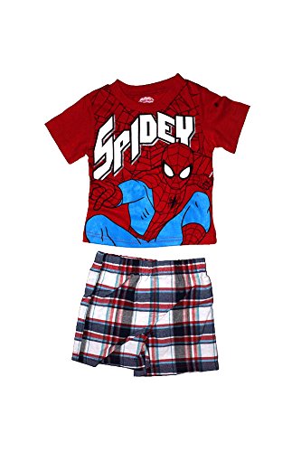 -. Title : Marvel Spider Man Baby Boys T Shirt & Plaid Short Outfit - Red White Blue
