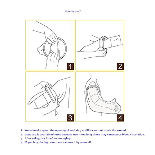 Tips: Before you use it, please read the manual carefully. This item is mainly designed for showering, bathing, swimming or for outdoor activities when you are recovering from injuries, surgeries, accidents, or when suffering from medical conditions such as cuts, rashes, burns, skin problems, wounds scratches. Great for prosthetic legs. 0