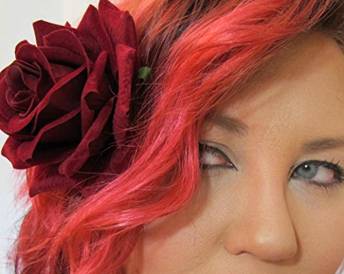 -. Title : Dark Red Velvet Rose Hair Flower Clip and Pin