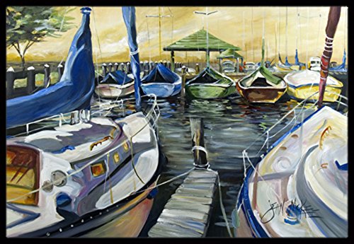 Caroline's Treasures Seven Boats Sailboats Indoor or Outdoor Mat, 18" x 27", Multicolor