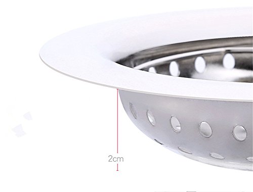 Universal Size: Top Diameter 11.cm(4.3in), Base Diameter 7.5cm(3in), Depth: 2cm(0.8in) ,Large rim, Max diameter 11cm (4.3inch), with 3inch diameter bowl,easy put into your sink, catch kitchen debris for you.