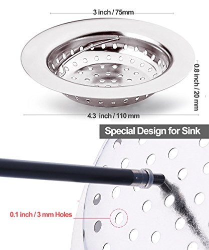 Sink Strainer Samyoung 2PCS Stainless Steel Sink Kitchen Drains Strainers 4.3-Inch Diameter Fit for Almost all Kitchen Sinks