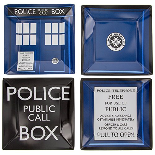 Product Description Doctor Who TARDIS Plate Set - Melamine - For Birthdays or any Party - You'll be eating like a Time Lord and wishing your stomach was bigger on the inside with this 4 piece plate set! This officially licensed Doctor Who product is a great present for any fan of the franchise! 0