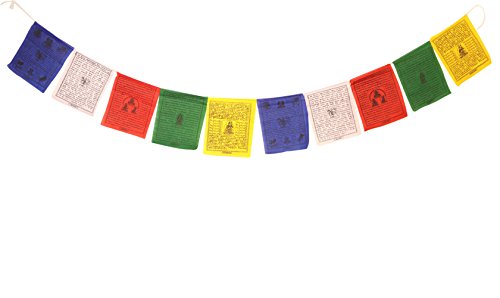 - Fair Trade Tibetan prayer flags from Nepal; 60” long string with small sized 8”x 6.5” flag, great for small porches, apartments & wall decor.