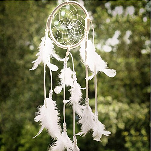 4.3" Diameter Length 20"Large Feather Dream Catcher Hanging Wall Hanging Home Decoration (White)