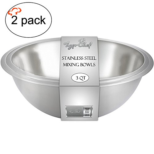 TigerChef TC-20449 Heavy Duty Mixing Bowls for Home and Commercial Use, Best Prep Bowls for Cake Mixtures, Doughs, Salads, Pastas, Dressings, Stainless Steel, 3 Quart (Pack of 2)