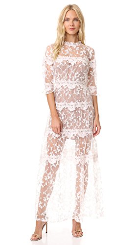 For Love & Lemons Women's Rosebud Embroidery Maxi Dress, Ivory, S