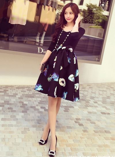 大き目の花柄が目を引くふんわりガーリーなフレアワンピース♥
