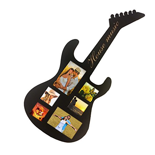 -. Feature : Perfect photo frame for music room or music class / Hangs on wall with 1 screw or hook, great quality and long lasting, preserve your photos with this unique adorable photo frame / Cute gift to music teacher or student. / Measures 29 inches from top to bottom black great quality easy to hang / 6 slot opening for photos, guitar shaped black frame, with gold wording