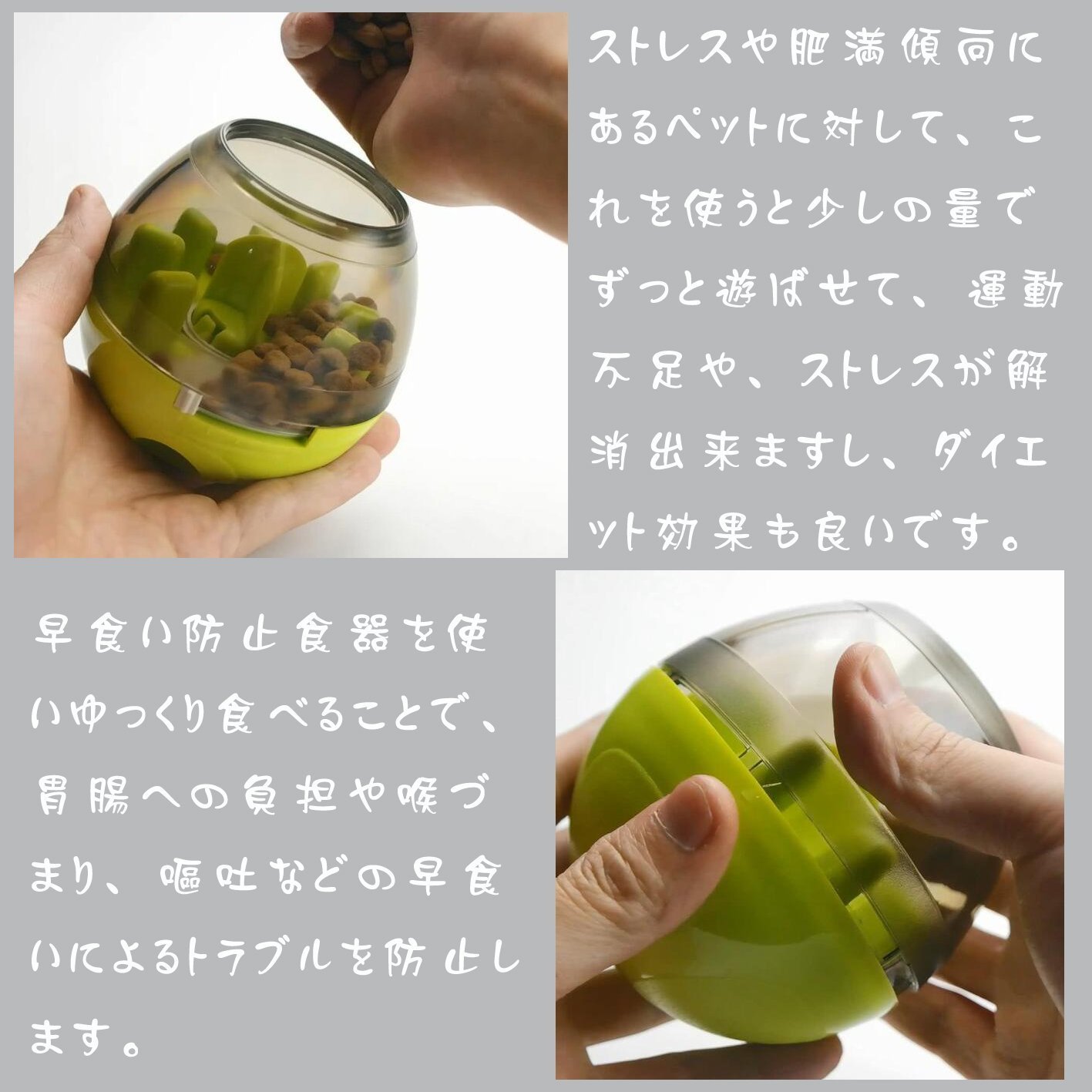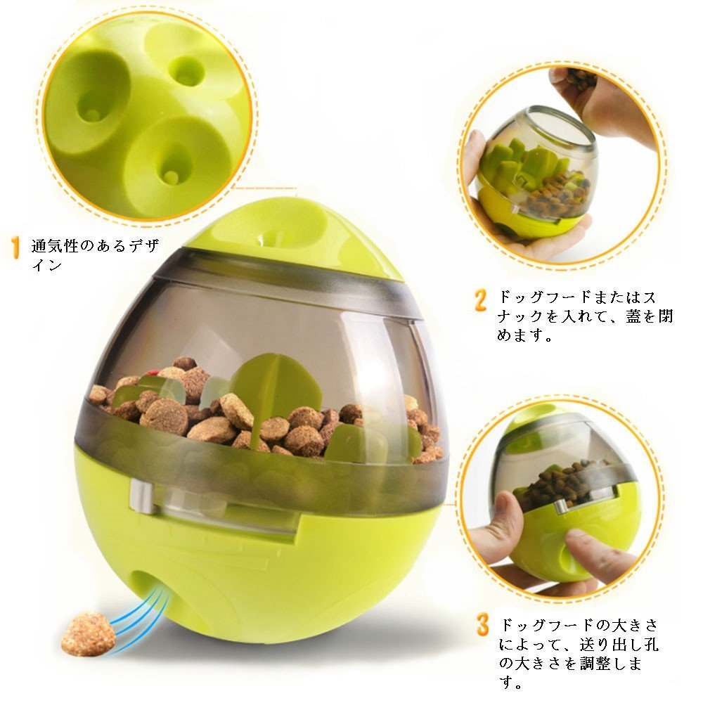 - ドライフードや小さく切ったおやつを入れたボールを転がして、中のおやつを出して遊ぶ知育玩具です。