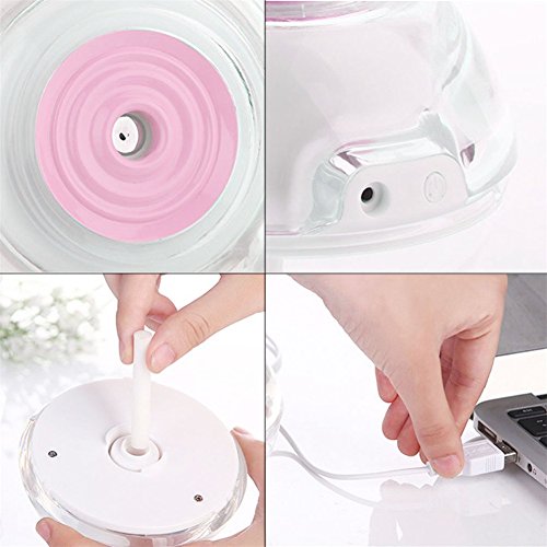 Crystal Night Lamp Humidifier,USB Charger Mini Humidifier Mute Large Capacity Ultrasonic (Pink)