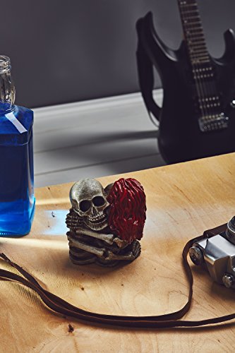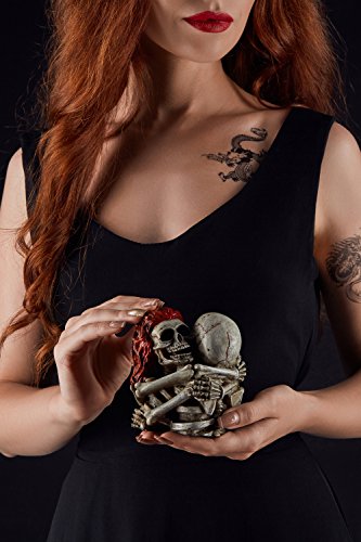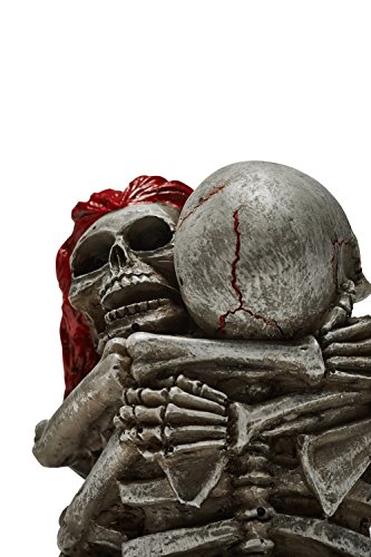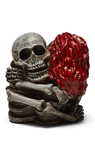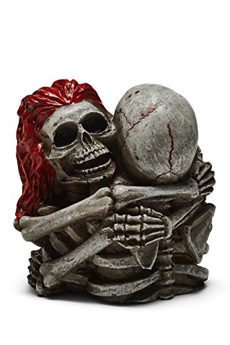 Love conquers all, even death! This wickedly romantic statuette, picturing hugging couple of skeletal lovers, boasts amazing level of details including cracks on his head, her mane of fiery red hair and facial features.