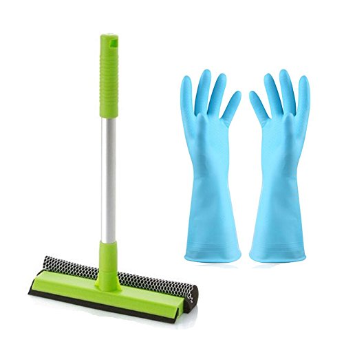 Window Squeegee Cleaner, Professional Shower/Mirror Washer and Mesh Scrubber with Rubber Gloves for Car, Bathroom, Glass and Auto by ALLCR