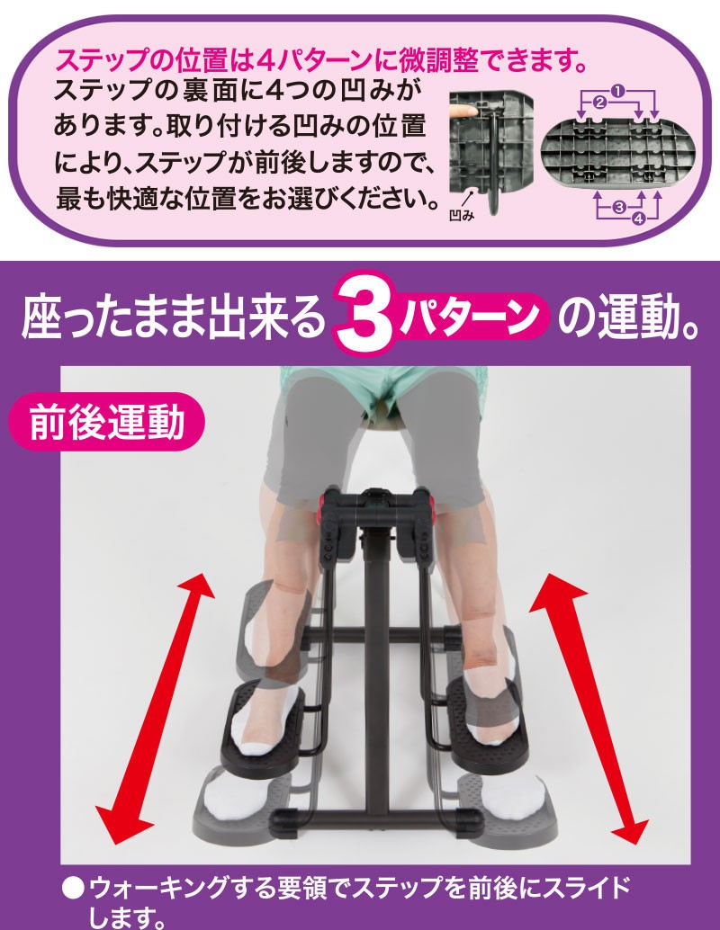 | ご使用上のご注意 | ●本製品は一般家庭(個人)用です。業務用としてご使用、その他不特定多数の方によるご使用はお止めください。 ●必ずいすに座ってご使用ください。 ●本製品は体重90kg以下の方が使用することを想定してつくられています。必要以上に体重をかけたり、高負荷でのご使用はお止めください。 ●本製品は健康な方を対象としています。体に持病や障害のある方、妊娠中の方は必ず医師にご相談の上ご使用ください。 ●水平な場所に設置してご使用ください。必要に応じて滑り止めやキズ防止のためマットなどを敷いてご使用ください。 ●使用時や折りたたみ時に、可動部に手・指などを挟まないように十分ご注意ください。 ●小さなお子様だけでのご使用はお止めください。 ●火気の近くや高温多湿の場所、直射日光の当たる場所には置かないでください。 ●保管後、再びご使用になる場合は当注意事項又は取扱説明書を再確認の上ご使用ください。 |