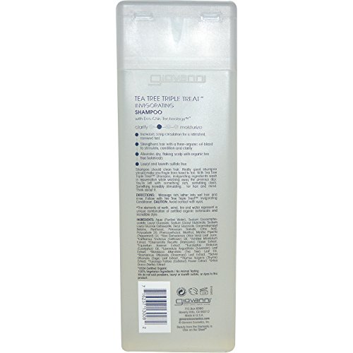 This bundle includes two 8.5 fl. oz. bottles of Giovanni All Natural Organic Tea Tree Triple Threat Invigorating Shampoo. Shampoo should clean hair. Really good shampoo should make you tingle from head to toe. With Tea Tree Triple Treat Shampoo, invigorating ingredients wash in rejuvenation while washing away the previous day. You're left with something rich, something clean. Something incredibly stimulating... for hair and mind. Think about it.Feature