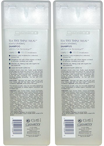 This bundle includes two 8.5 fl. oz. bottles of Giovanni All Natural Organic Tea Tree Triple Threat Invigorating Shampoo