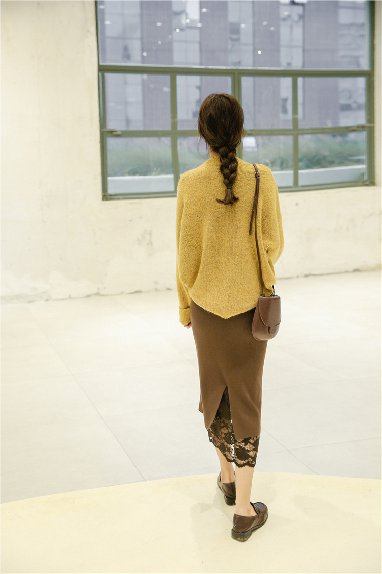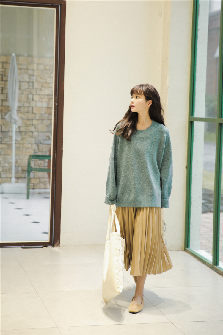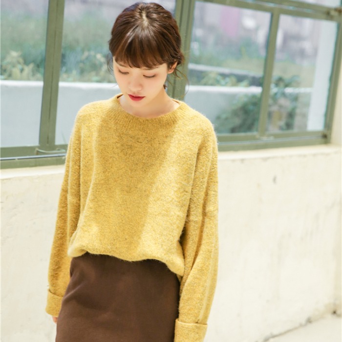 ややゆったりめのボディに太めのリブ切替でメリハリをつけたシルエットは、パンツにもスカートにも好相性です。