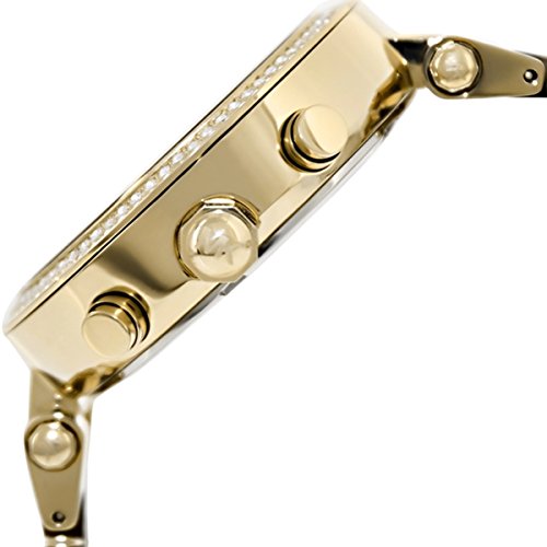Studio : Michael Kors Watches Publisher : Michael Kors Watches Binding : Watch Product Description This Michael Kors timepiece features a champagne dial set on a sparkling pavAⓒ case. A stunning jewelry-inspired bracelet completes the look. Brilliant crystal embellishments add an irresistibly dressy touch to this sport chronograph. Perfect for work or the weekend. 0