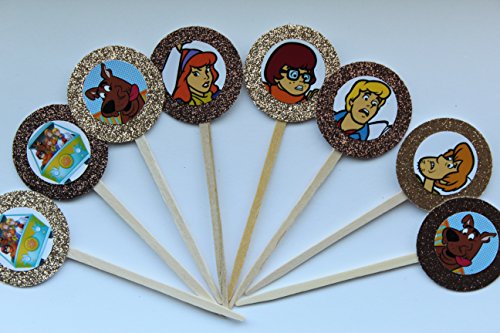 8 ScoobyDoo Cupcake Toppers for 1st First Birthday Valentines Scooby Doo Mystery Machine Party Favor Decor Supplies