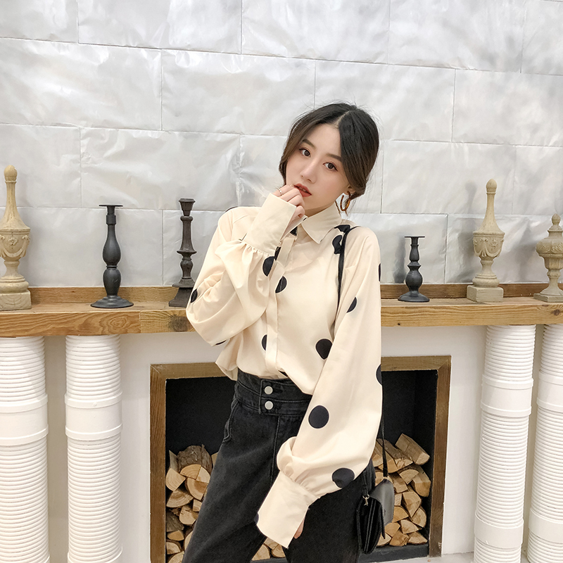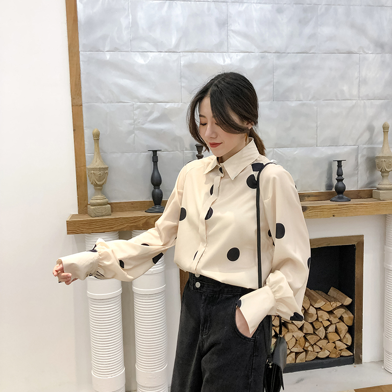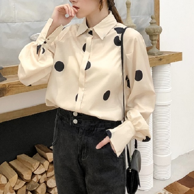 大きめドットがポップ&クラシカルな可愛さ引き立つブラウス♪
