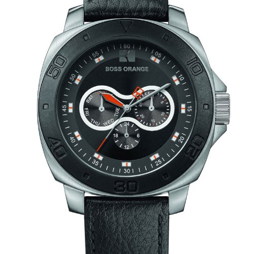 -. Title : BOSS ORANGE Black Leather Mens Watch 1512672