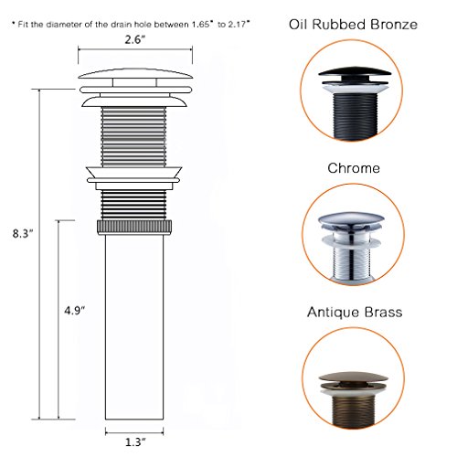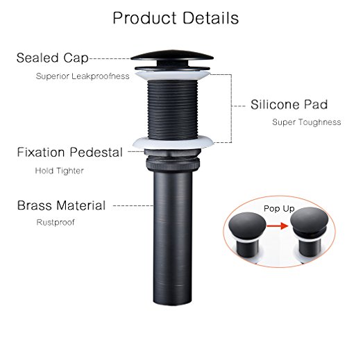 BESy Brass Bathroom Faucet Vessel Vanity Sink Drain Stopper Pop Up without Overflow, Oil Rubbed Bronze
